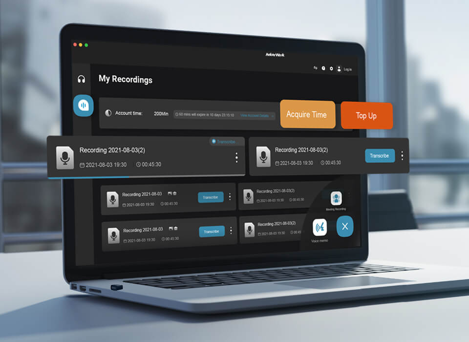 Focus more on the meeting than taking notes. Get meeting audio recordings from beginning to end, and when the meeting is over, just click the "Transcribe" button to get it all in writing.