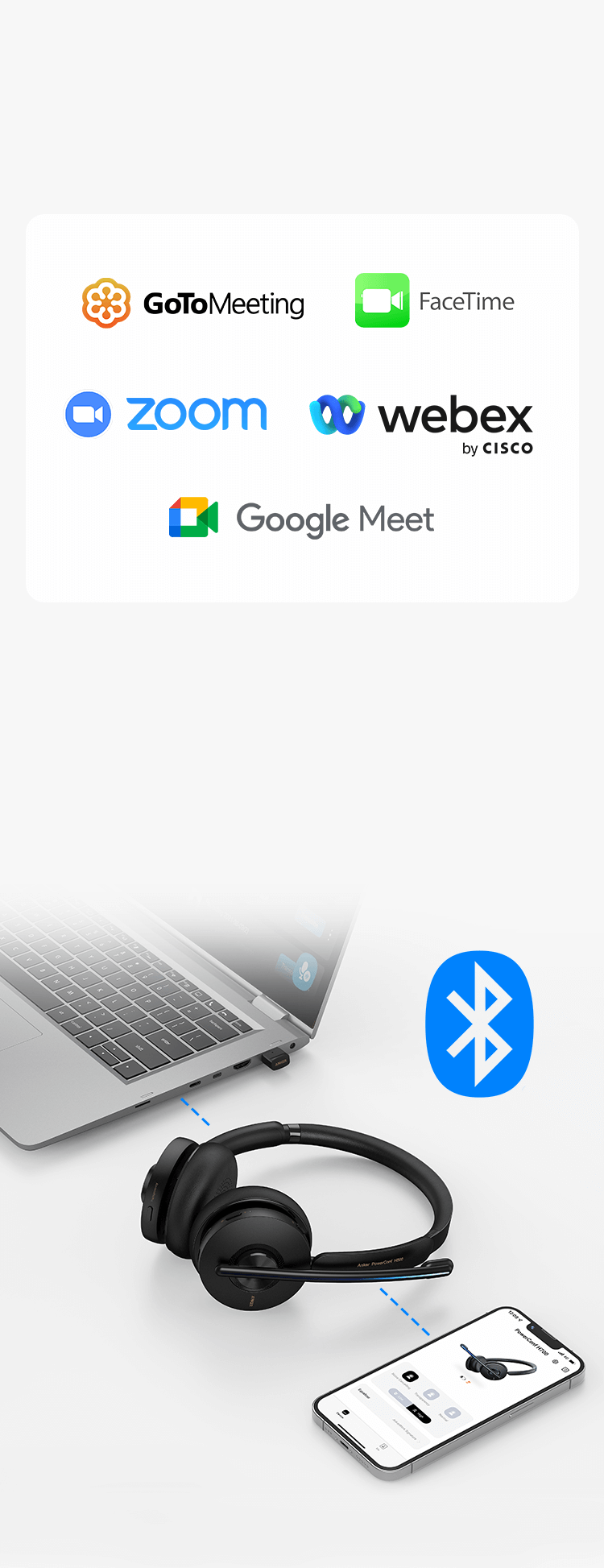 PowerConf H500 works with leading conference platforms. The AnkerWork software integrates seamlessly to fine-tune your audio experience.